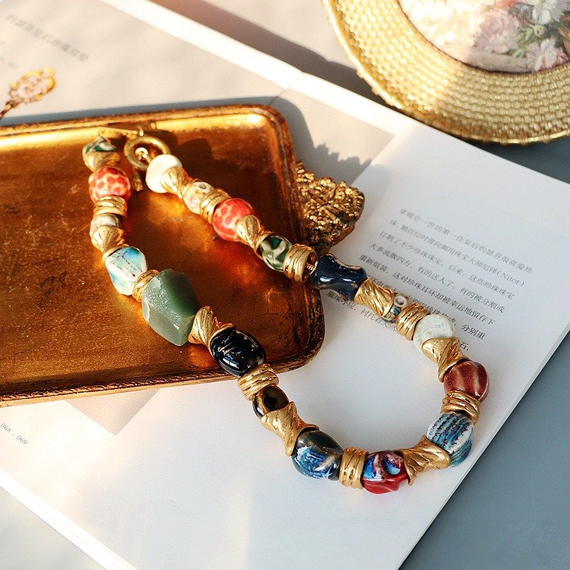Absolutely in love with this statement necklace! The irregular geometry of the ceramic beads gives it such a modern, artistic vibe—each piece feels like a tiny work of art. The metal wire-drawing details around the beads add so much texture, and that pop of turquoise glass in the center? Total showstopper. It's lightweight enough for everyday wear but bold enough to elevate even a simple t-shirt. Shipping was fast and it arrived beautifully packaged.